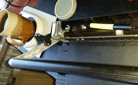 2 springs broke loose, pointed by yellow marker, pre repair 2 springs broke loose, close up, pointed by yellow marker, pre repair