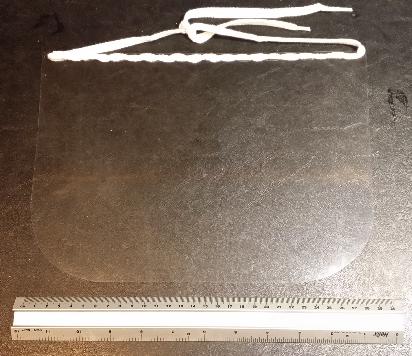 hole punch visor, punched, threaded with shoe lace, corners cut, ruler adjacent