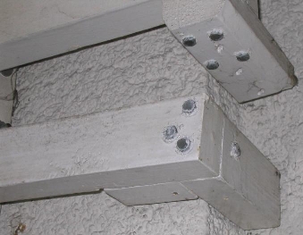2 Similar pictures First shows the wrap around the concrete pillar a bit better. Second shows the near wall of the balcony too, showing diagonal beam goes whole way across balcony.