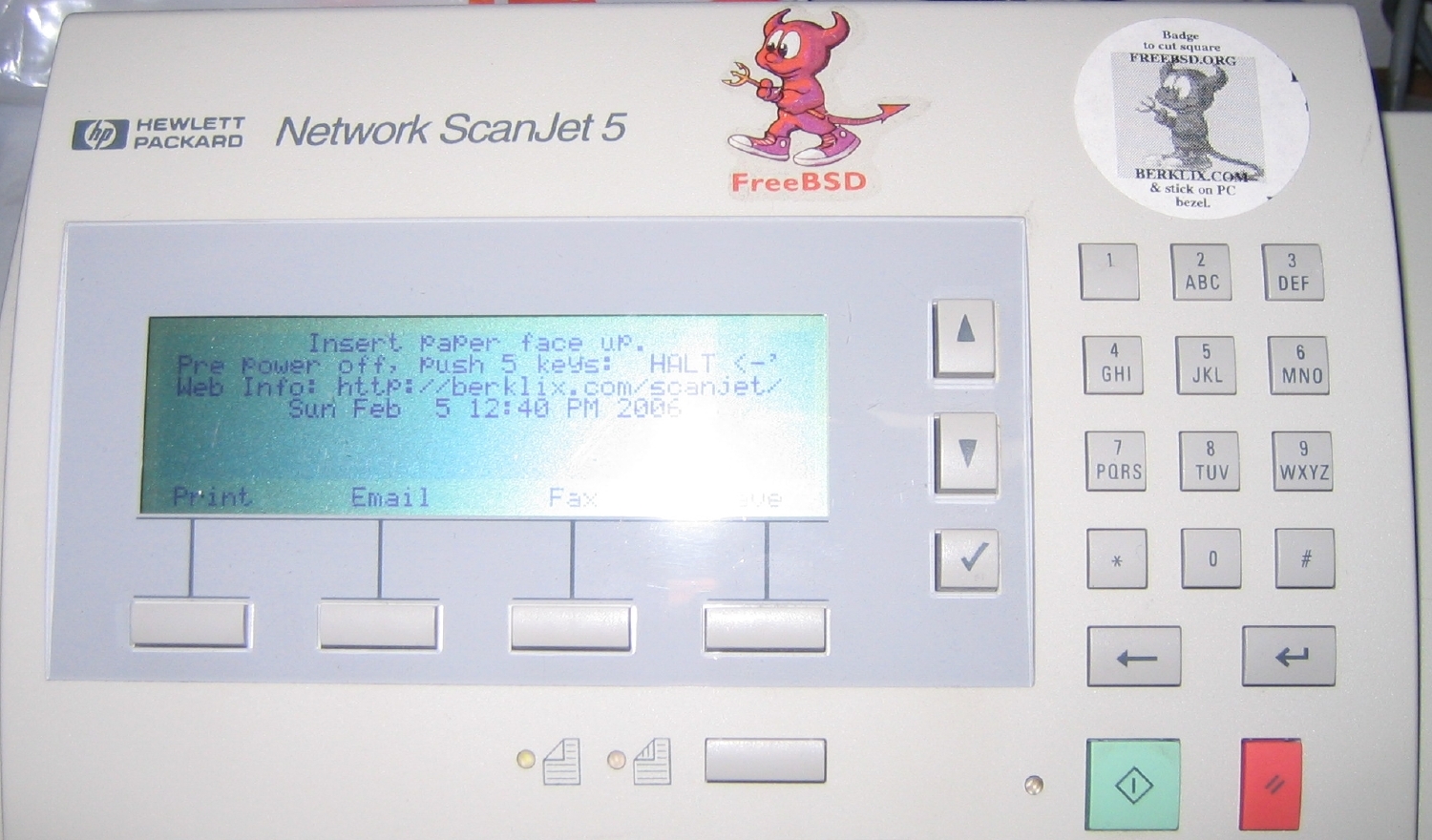 picture of whole HP Network ScanJet 5 BSD daemon logo control panel
